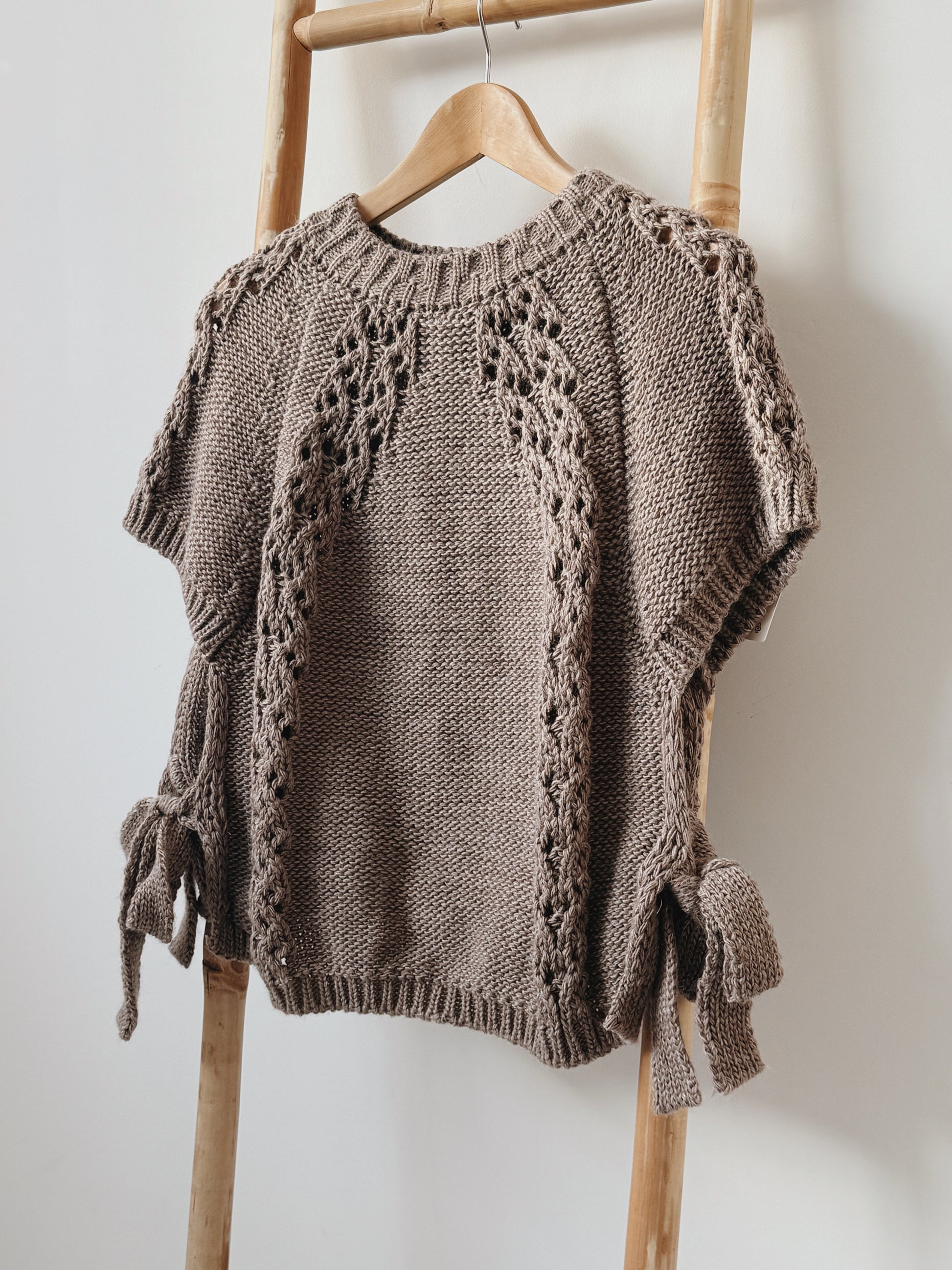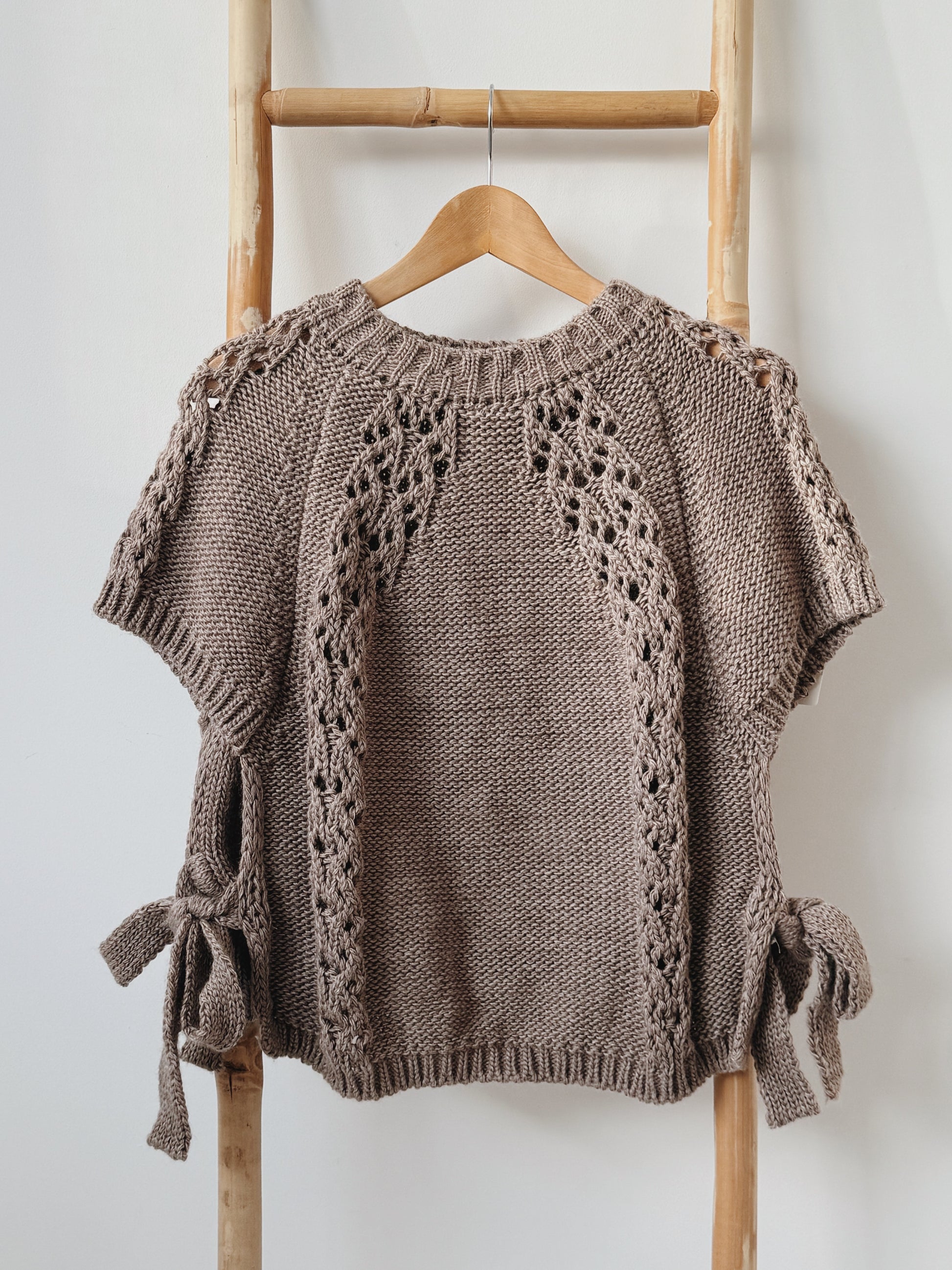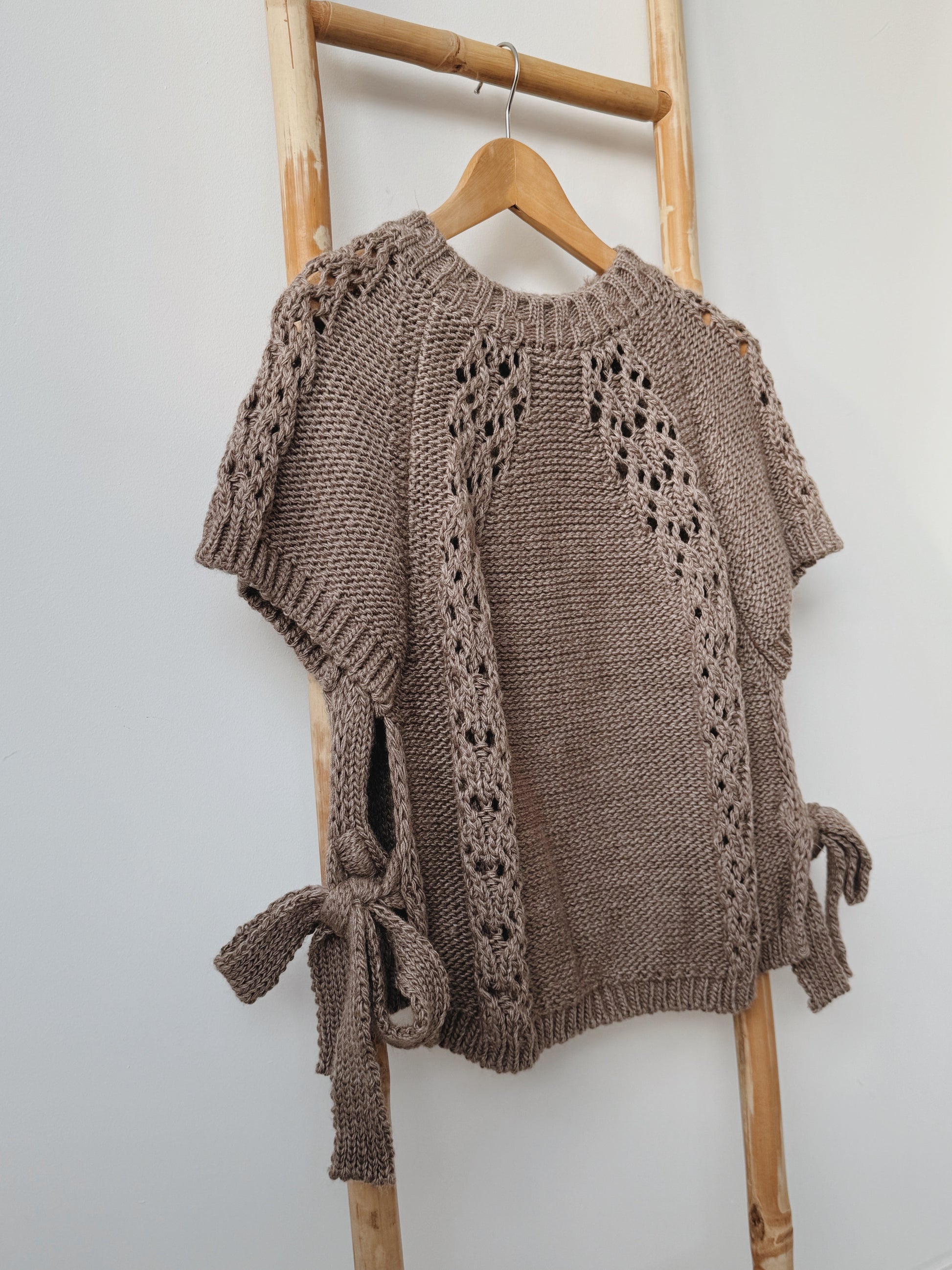 Chunky knitted vest in a soft light brown tone. Free size as it has adjustable ties on the side and stretch to it. Brand new with tags. RRP £39.