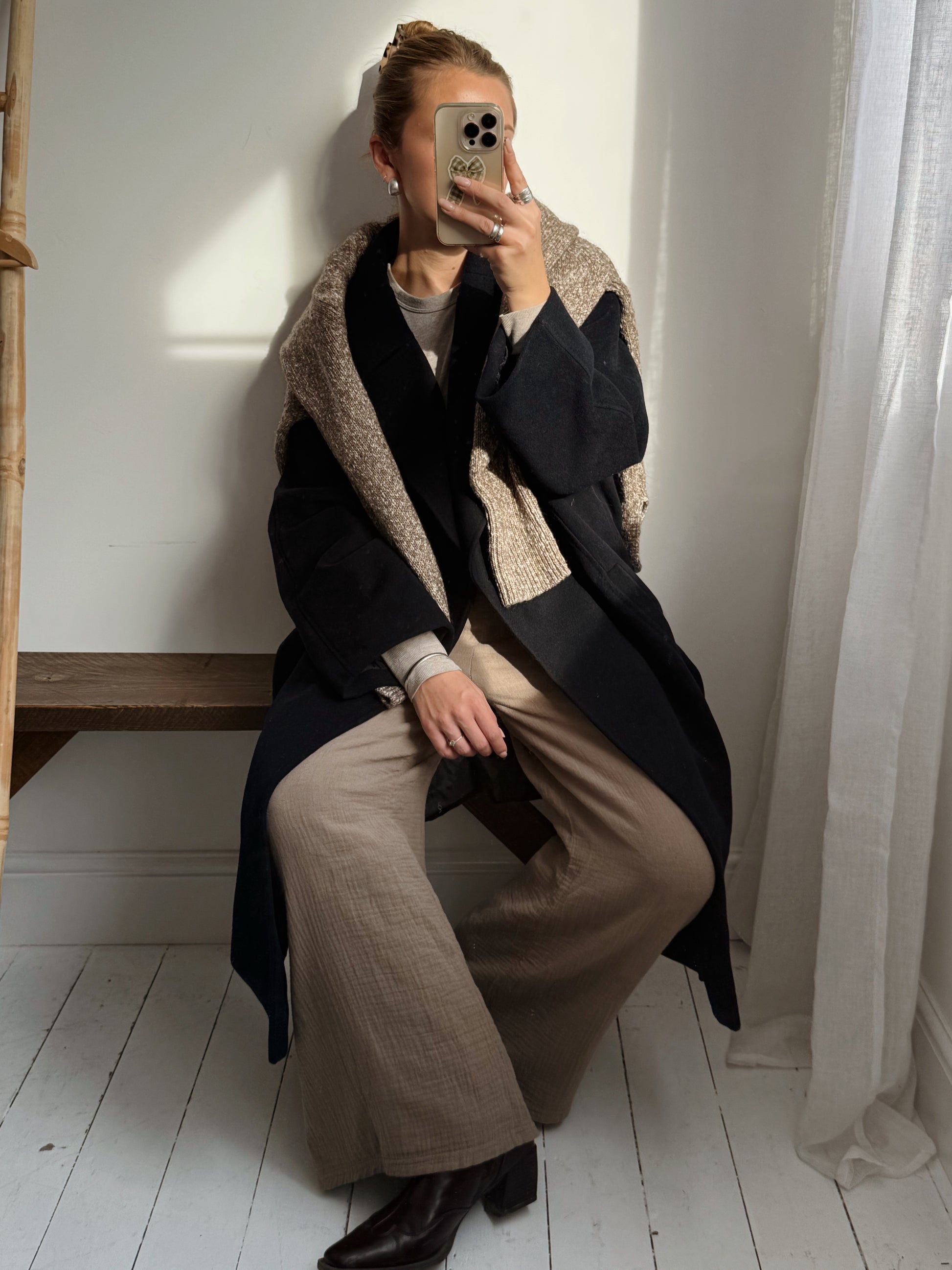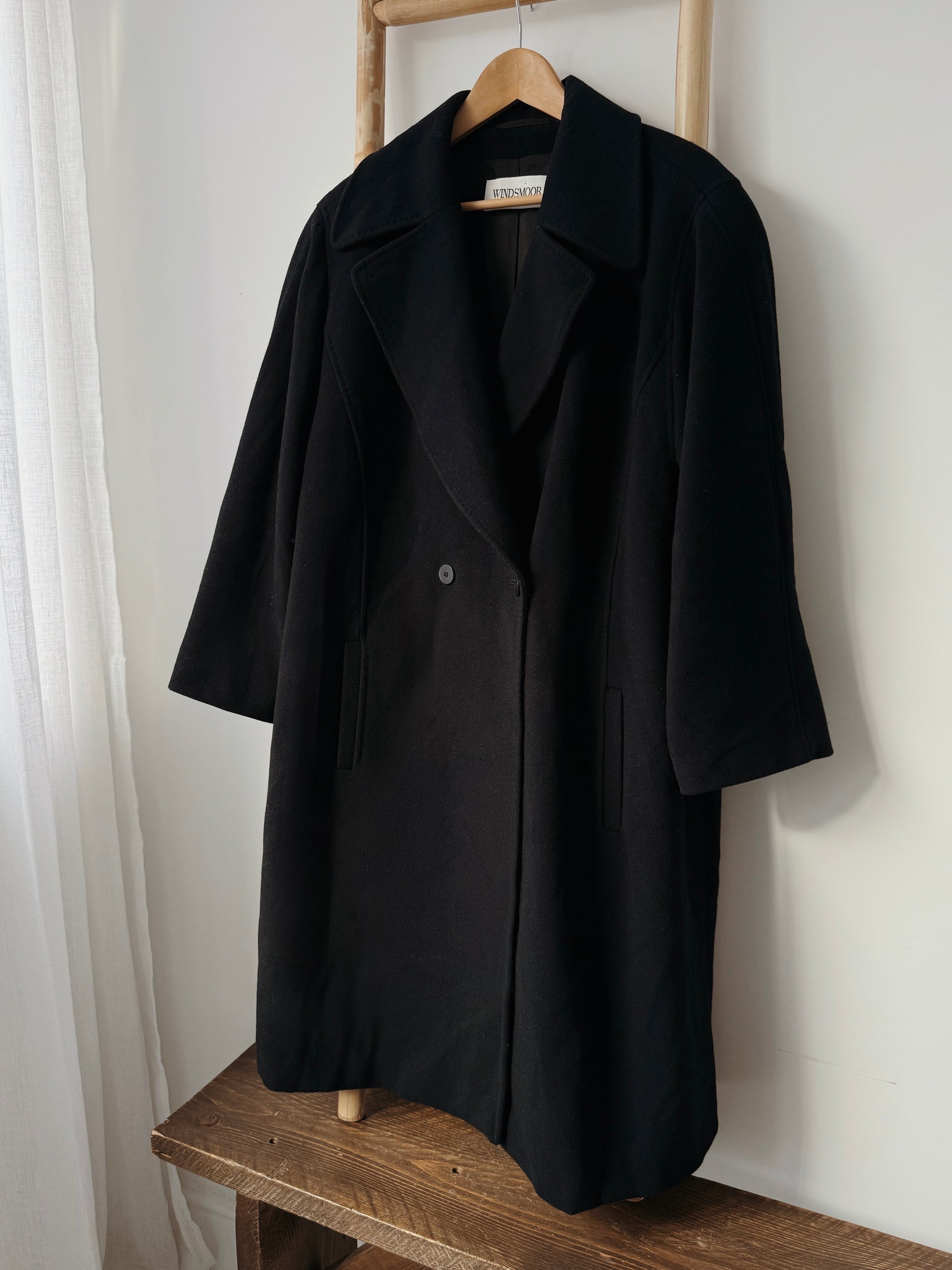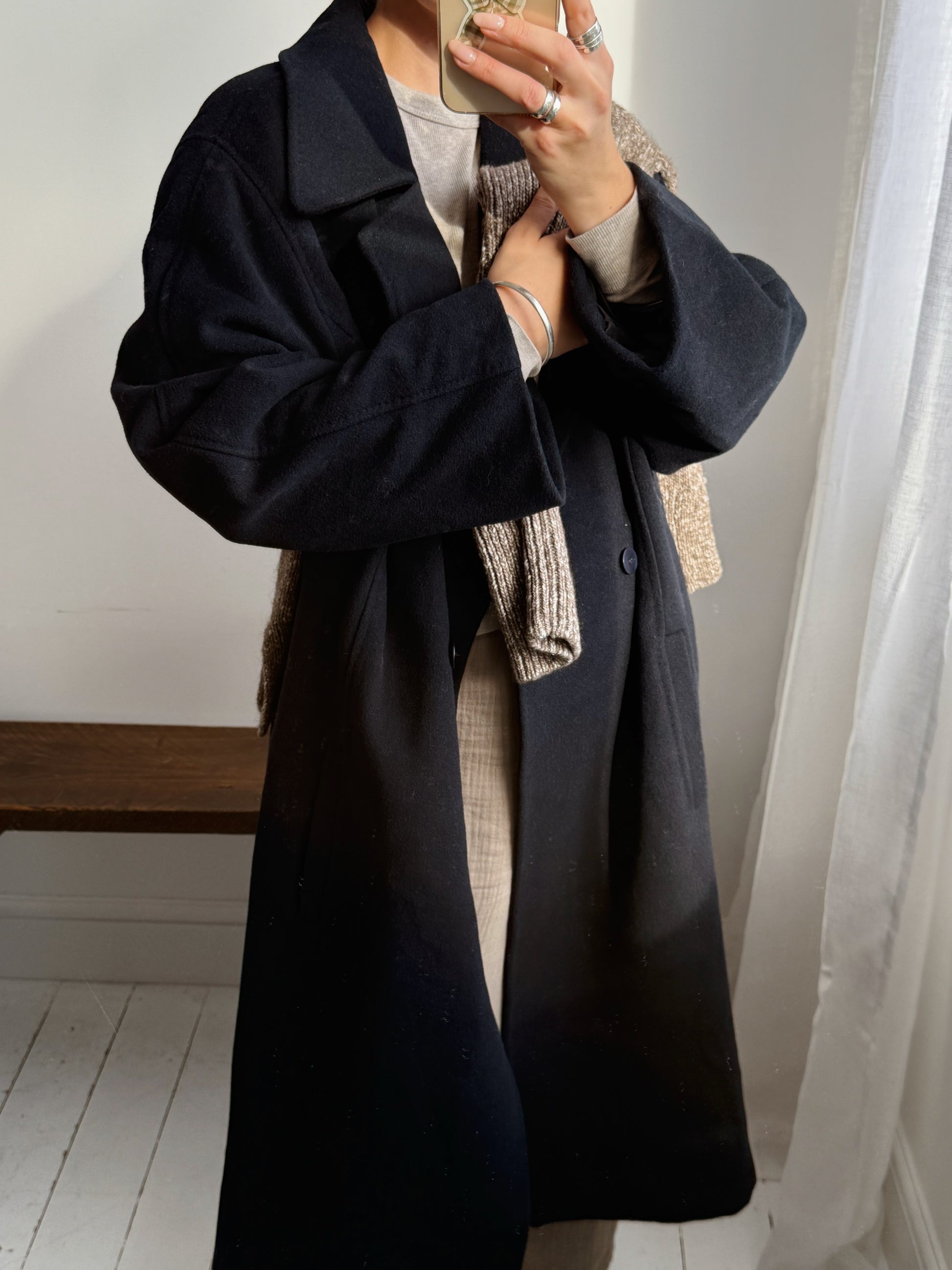 Dark navy wool & cashmere blend coat by Windsmoor. Long length. Great vintage condition. Would suit between sizes 14-20.